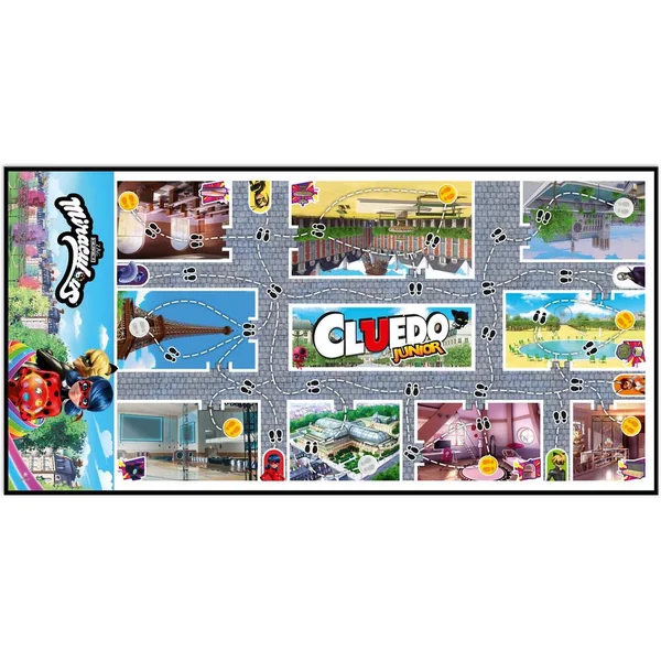 Votre enfant rejoint les super-héros Ladybug et Chat Noir pour protéger la ville de Paris de l’invasion des super vilains dans le jeu de société Cluedo Junior Miraculous de la marque Winning Moves.