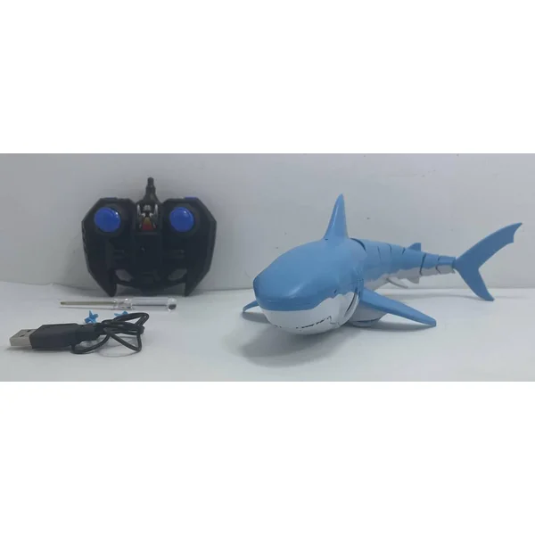 Ce jouet est proposé dans un coloris bleu attrayant et est fabriqué en plastique durable. La batterie rechargeable de 3.7v 400mah li po est incluse dans le corps du requin, et 2 piles lr6 sont fournies pour la radiocommande, assurant une mise en route rapide et facile.