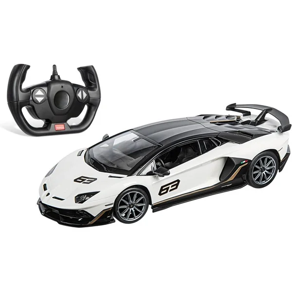 Réplique radiocommandée de la Lamborghini Aventador SVJ. Les phares s’allument pendant le pilotage. Échelle : 1/14ème (35cm). Commande « toutes directions » : avant, arrière, gauche et droite. Vitesse : 8 km/h . Fréquence : 2,4GHz (idéale pour jouer à plusieurs sans interférence). Portée : 30 mètres (environ). La carrosserie « Hard body » (plastique rigide) présente un niveau de finition et de détails de grande qualité, aussi bien à l’extérieur qu’à l’intérieur du véhicule, et assure solidité et durabilité. Fonctionne avec 5 piles LR6 / AA (non fournies) pour le véhicule, et 2 piles LR6 / AA (non fournies) pour la télécommande.