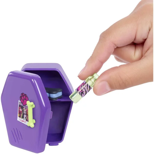 Ce coffret Monster High Chambre de Clawdeen Wolf possède tout ce dont peut rêver une fille de loup-garou ! Il comprend du mobilier, notamment un lit, un bureau, un mini-réfrigérateur et un miroir fonctionnel, ainsi que de nombreux accessoires pour imaginer une multitude d’histoires effroyablement amusantes. Une feuille d’autocollants permet de décorer la chambre pour un résultat férocement stylé. Poupée non incluse. Les couleurs et les décorations peuvent varier.