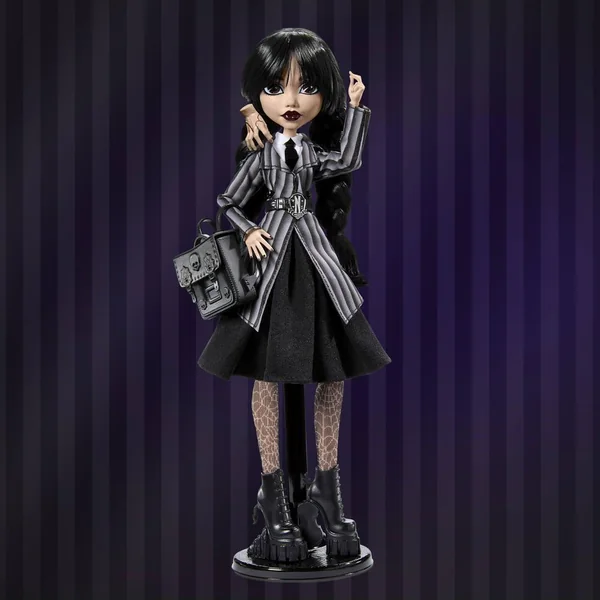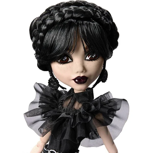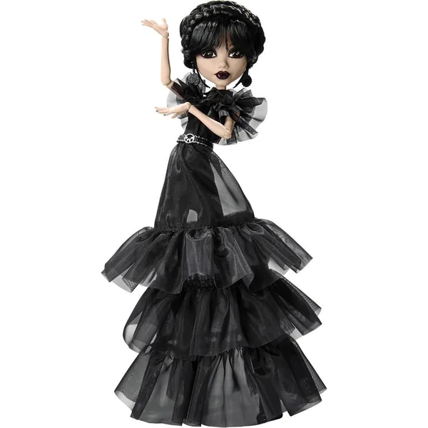 Le bal des malheurs Cette poupée Mercredi Addams en Tenue de Bal arbore une robe de soirée noire glamour inspirée par la robe vintage du personnage dans la scène de danse du bal de l’école. Noire comme son sens de l’humour, la robe en organza de Mercredi est composée de couches transparentes comme autant d’ombres.