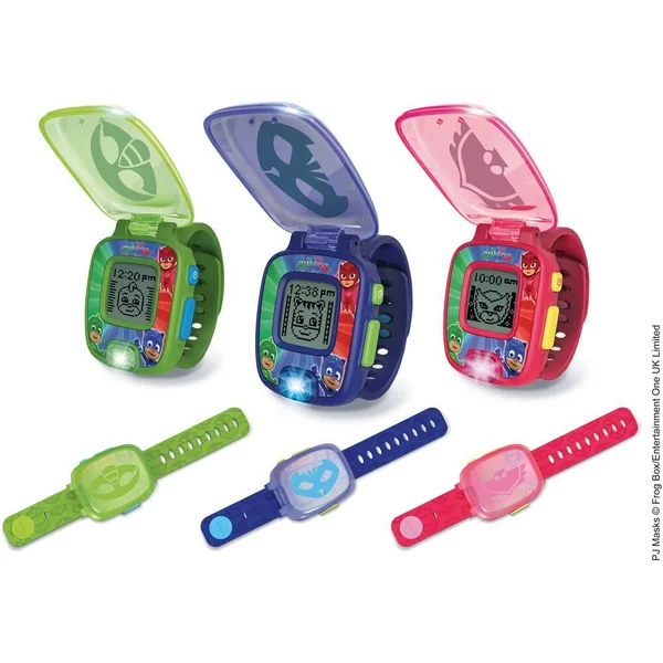 Une montre multifonction parlante aux couleurs des Pyjamasques avec un écran animé pour jouer et apprendre avec tes héros préférés ! Nombreux cadrans pour personnaliser sa montre. Un bouton lumineux pour devenir un vrai justicier la nuit. 4 jeux pour faire des découvertes avec tes héros, apprendre à compter, découvrir les nombres et les formes. Double affichage de l’heure : analogique ou digital. Fonctions alarme/réveil, chronomètre et sablier pour délimiter un temps donné. Modèle selon disponibilité. Vendu à l’unité. Il convient aux enfants de 3 à 7 ans.