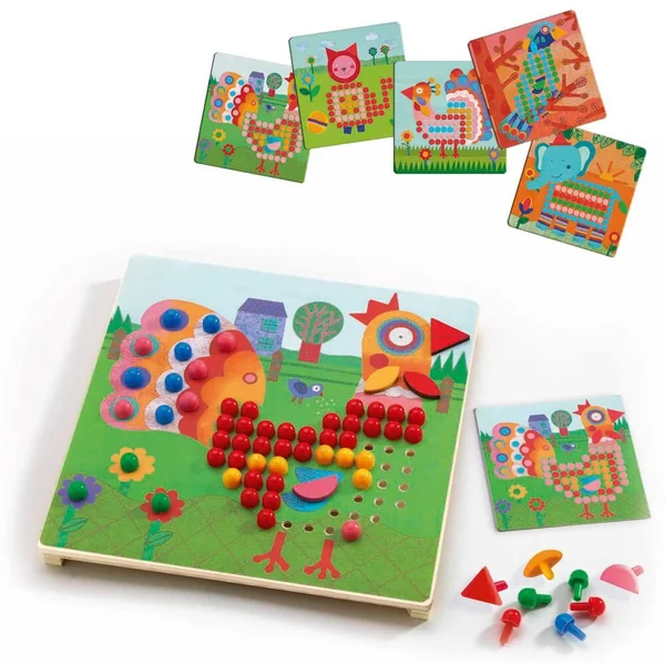 Créer de fabuleux tableaux en complètant les 8 dessins avec les pions de couleur.