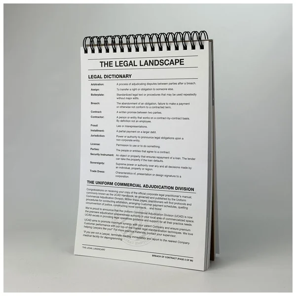 Breach of Contract est la référence en matière du droit des entreprises dystopiques pour la première édition de Mothership. Ce livre vous apprendra à penser, agir et négocier comme une mégacorporation, vous aidant à concrétiser l’influence de votre Compagnie sur l’univers.