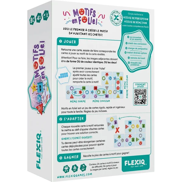 Ajuste tes cartes pour recréer un motif imposé. Mais attention, pour accoler deux cartes, elles doivent avoir une couleur ou une forme en commun !