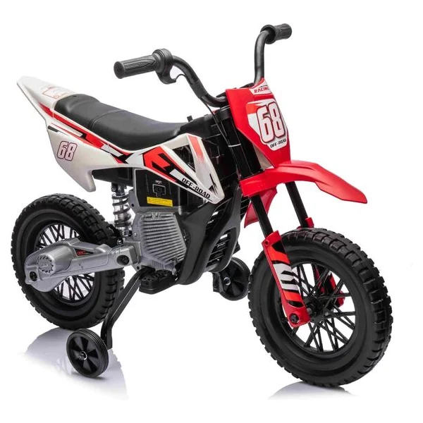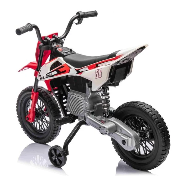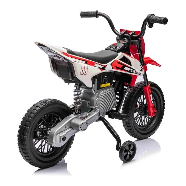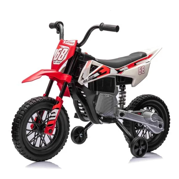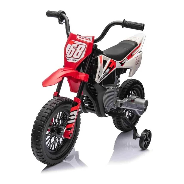 Moto électrique MOTOCROSS, rouge, batterie 12V, roues souples EVA