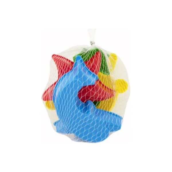 • Le set comprend 4 moules en plastique sur le thème du monde marin et est emballé dans un filet.
