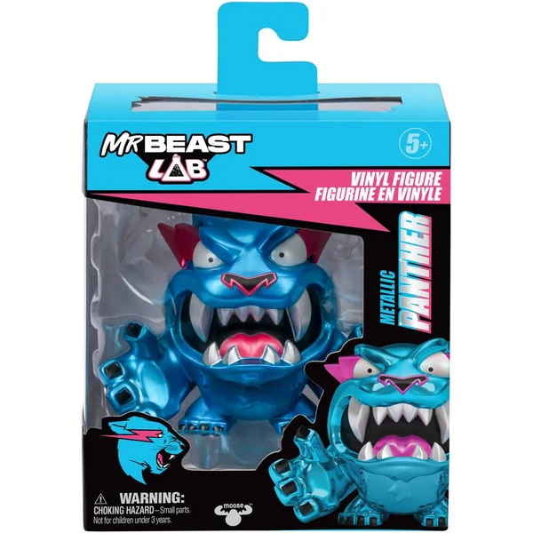 Nouveaux jouets en vinyle MrBeast Lab. Ils mesurent 8,8 cm et sont présentés dans un emballage de qualité. Il y en a 4 à collectionner : Classic Panther, Hyper Panther, Glow Panther et la très rare Metallic Panther.