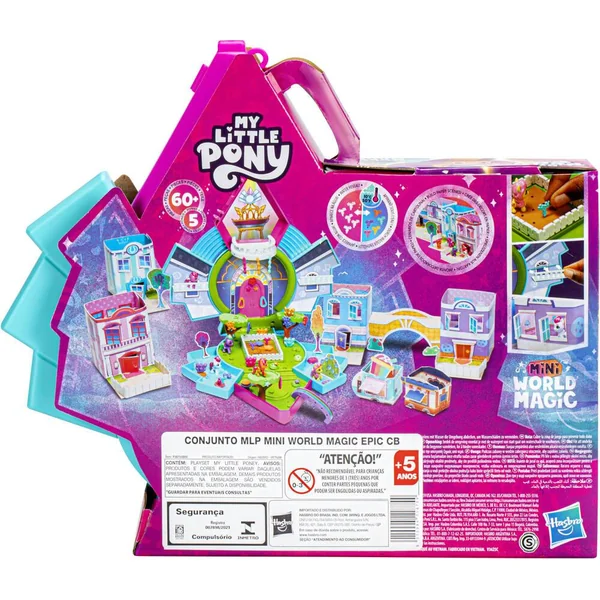 Les enfants peuvent construire un monde d’amis magiques miniatures provenant des 4 coins d’Equestria ! Les coffrets My Little Pony Mini Monde Magique incluent des scènes miniatures et des personnages adorables inspirés de la série My Little Pony : Raconte ton histoire. Le coffret Mini maison de cristal est vendu avec 5 figurines adorables de 2,5 cm : Sunny Starscout, Zipp Storm, Posey Bloom, Daring Flare et Maverick Mauve. On peut emboîter des accessoires de décor dans le coffret pour personnaliser la Mini maison de cristal. De plus, le coffret inclut des décors en papier pour que les enfants puissent créer des lieux inspirés de la Baie de Port-poney et des accessoires changent de couleur au contact de l’eau ! Le coffret est vendu dans une mallette qu’on peut transporter partout.