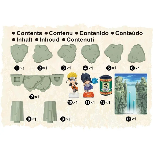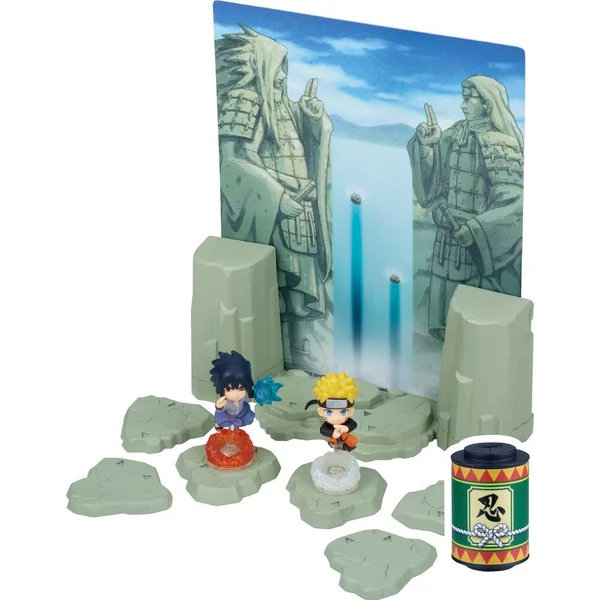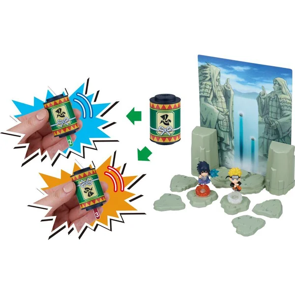 Entre dans l’aventure de Naruto ! Recrée la bataille épique entre Naruto et Sasuke. 2 figurines ninja incluses pour un diorama ultra fidèle à l’animé. Ce n’est pas seulement un diorama mais aussi un jeu : secouez le parchemin pour avancer et ombattez votre adversaire