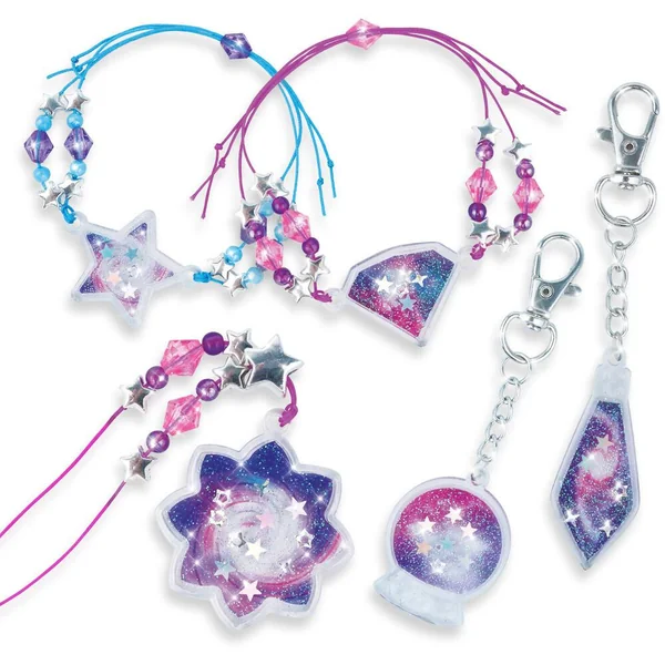Fabriquez 8 magnifiques bijoux en résine scintillante ! Chaque fois que vous avez besoin d’un moment de repos, fermez les yeux et tenez-les fermement dans vos mains. Ils vous permettront d’entrer dans le monde apaisant de Nebulous Stars !