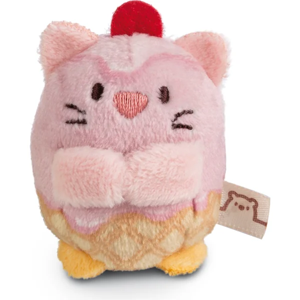 Angy, petite chatte Mymochi Minis, qui ressemble à un véritable cornet de glace avec une cerise sur le dessus. C’est drôle !