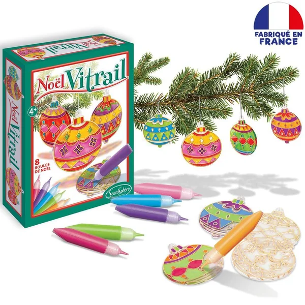 Un mini coffret au prix très accessible pour décorer un arbre de Noel avec des boules plates, qui deviennent multicolores grâce aux peintures vitrail. Un moyen pour faire participer les enfants dès leur plus jeune âge à la décoration de Noël.