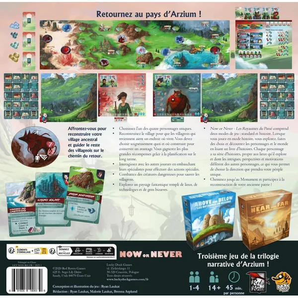 Après Above and Below et Near and Far, Now or Never – Les Royaumes du Passé vient clore la trilogie narrative d’Arzium. Plongez dans de nouvelles aventures en explorant des lieux extraordinaires où vous croiserez des peuples singuliers et de dangereuses créatures, dont il faudra protéger les villageois. Dans la peau de personnages uniques, affrontez-vous pour reconstruire votre village ancestral et guider les villageois sur le chemin du retour.