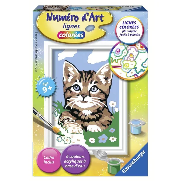 Un petit kit pour s’initier à la peinture par numéro. C’est facile, beau et hyper amusant grâce aux lignes colorées pré-peintes ! Contient un tableau avec des zones colorées et des numéros qui correspondent aux couleurs, 5 à 6 pots de peinture, un pinceau de qualité, un modèle et un beau cadre pour accrocher son oeuvre. Un mini format idéal pour s’initier !