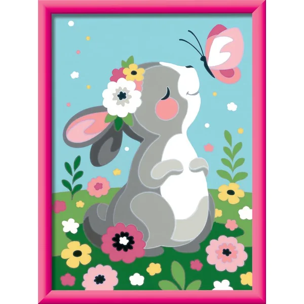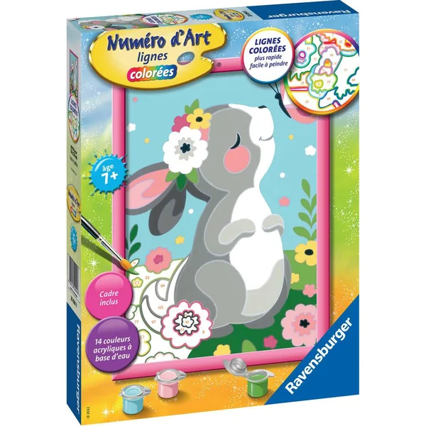 C’est facile, beau et amusant de peindre par numéro grâce aux lignes colorées pré-peintes ! Parmi les 18 visuels moyens formats à peindre et à accrocher, ce lapin entouré de fleurs et de son ami le papillon saura ravir les enfants et compléter leur collection.