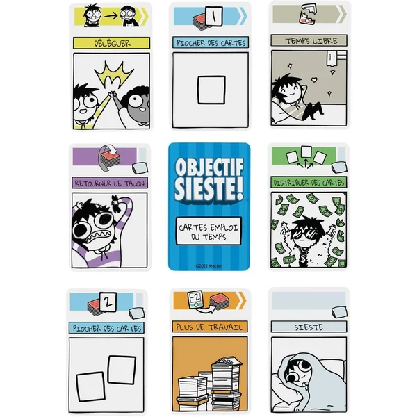 Devenez maître dans l’art de toujours tout remettre à plus tard avec le jeu de cartes PROCRASTINATION ! Inspiré par Sarah Andersen et sa BD en ligne Sarah’s Scribbles, ce jeu consiste à éviter à tout prix la Tâche complexe et inévitable. Jouez des cartes Emploi du temps pour récupérer des cartes Activité : les cartes Distraction vous rapportent des points, les cartes Responsabilité vous en font perdre. Ce jeu simple et rapide est idéal pour les adultes et les enfants dès 7 ans et sera donc une option de choix pour vos moments de jeu en famille. Les couleurs et les décorations peuvent varier.