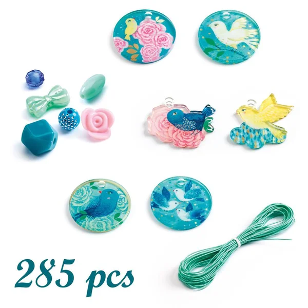 Un coffret contenant 285 perles acrylique et 6 pendentifs « Oiseaux » pour créer de jolis bijoux. Un assortiment de couleurs bien pensé pour un résultat toujours harmonieux. L’enfant enfile sur les fils les perles pour réaliser de jolis colliers ou bracelets en toute liberté.