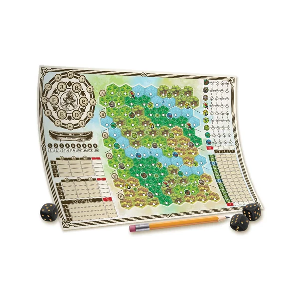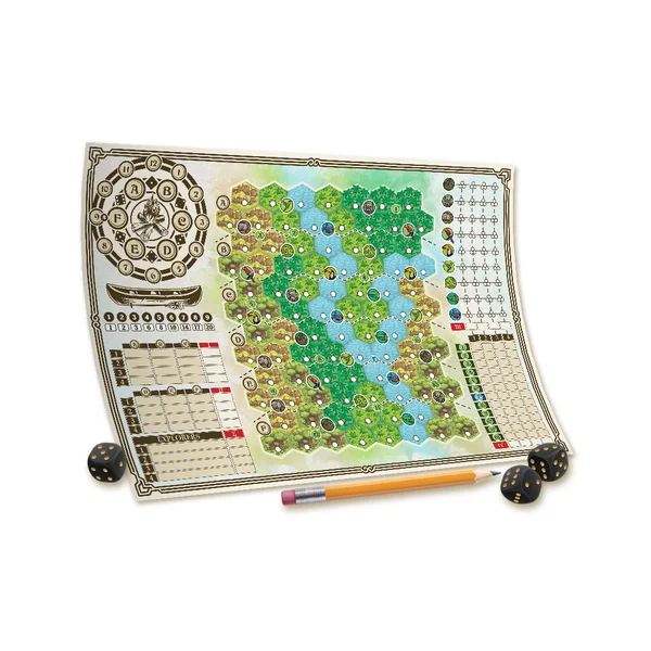 Les joueurs n’utilisent qu’une seule feuille de jeu commune. Le jeu a une mécanique très simple mais attrayante. Il suffit de lancer deux dés, chacun d’entre eux vous permettant de choisir l’un des deux secteurs de la carte où vous pouvez envoyer votre expédition et installer les camps. Si vous avez choisi une région où se trouvent déjà des expéditions, vous devez installer un camp à côté d’elles. C’est simple, mais c’est là que le bât blesse, car même les camps de l’ennemi peuvent vous rapporter des points ! Préparez votre sac à dos et partez en expédition vers l’inconnu !