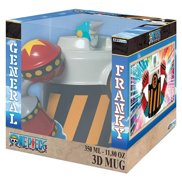 SUUUUUUUUUUUUUUPER !! La cavalerie est arrivée ! Franky débarque pour vous sauver grâce à son ultime transformation en Iron Pirate ! Que vous soyez fans de slips, fans de robots cyborgs ou juste fan de One Piece, ce mug 3D Franky par ABYstyle est fait pour vous !