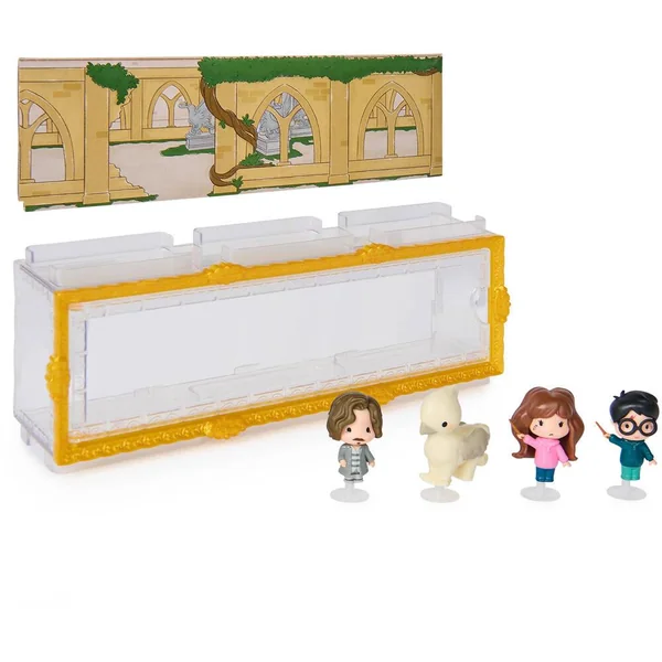 Des mini figurines à collectionner dans des boîtes représentant des scènes de lieux cultes de la saga Wizarding World Harry Potter.