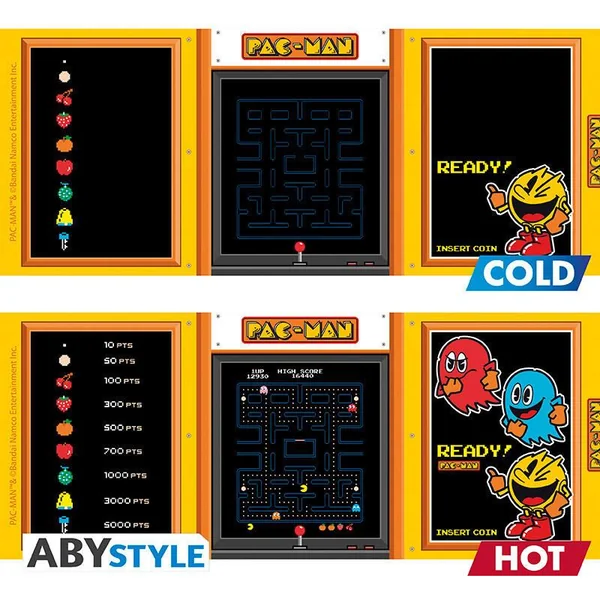 Vous souvenez-vous de toutes vos parties de Pac-Man faites sur de vielles bornes d’arcade ? ABYstyle s’en est inspiré avec ce superbe mug thermo-réactif pour que vous puissiez replonger en enfance à chaque gorgée d’une boisson chaude ! Caractéristiques : – Change d’aspect lorsque vous versez un liquide chaud. – Grande contenance (460 ml). – Ne passe pas au micro-ondes ou au lave-vaisselle – Matière céramique. – Packaging : boîte cartonnée permettant de protéger le mug tout en assurant une visibilité à 360°.