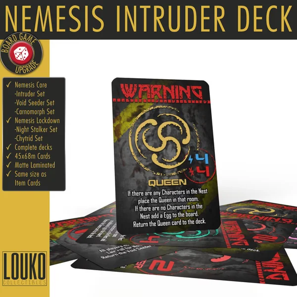 Le Nemesis Intruder Deck se mélange comme un deck normal et contient tous les jetons dont vous avez besoin pour chaque partie ! Plus besoin de fouiller dans votre sac et de le vider sur la table à chaque fois que vous voulez enlever ou ajouter un jeton, au lieu de cela, regardez dans un petit paquet de cartes et trouvez ce que vous voulez facilement et rapidement. Pas de perte de temps de jeu.