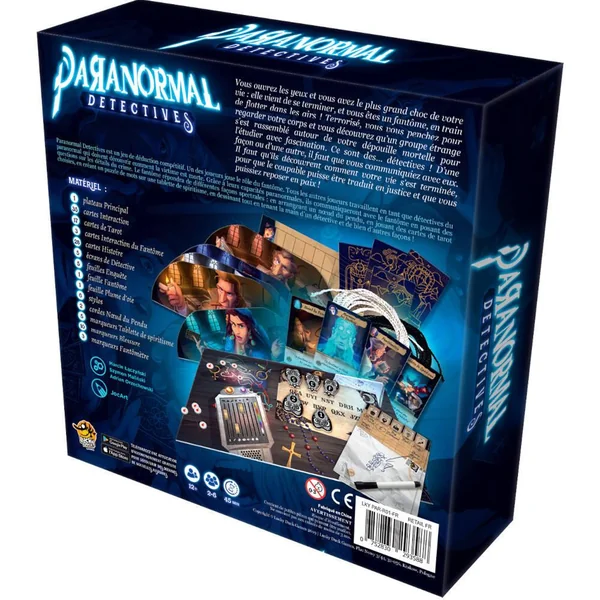 Votre vie vient de prendre fin et vous êtes maintenant un fantôme, flottant dans l’air en regardant votre propre corps. Vengez votre mort en essayant de communiquer ce qui vous est arrivé avec les détectives du paranormal qui sont venus inspecter votre corps! Faites-le en créant des formes à l’aide d’une corde de pendu, pointez les lettres et symboles sur une planche de ouija, dessinez des images en tenant la main d’un détective et beaucoup d’autres formes d’interactions. Paranormal Détectives est un jeu de déduction compétitif où un joueur prend le rôle d’un fantôme et les autres jouent les détectives en essayant d’être les premiers à découvrir qui est la victime ainsi que comment, où et pourquoi il est mort.
