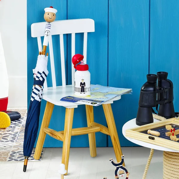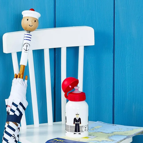 Bon vent ! Bonne mer ! C’est ainsi qu’on souhaite une bonne traversée aux marins qui embarquent sur un navire. Nous embarquons nous aussi pour cette collection de jouets que nous avons créée spécialement en collaboration avec la Marine nationale. cet adorable parapluie marin avec sa structure en carbone et son système anti-pincement est idéal pour accompagner les petits mousses sous les embruns ! Fabriqué en France, ce parapluie est laqué suivant un procédé unique d’immersion dans des bains de laque, qui fait la renommée de notre atelier de fabrication du Jura.