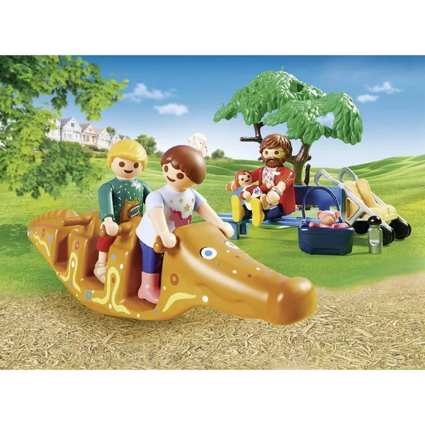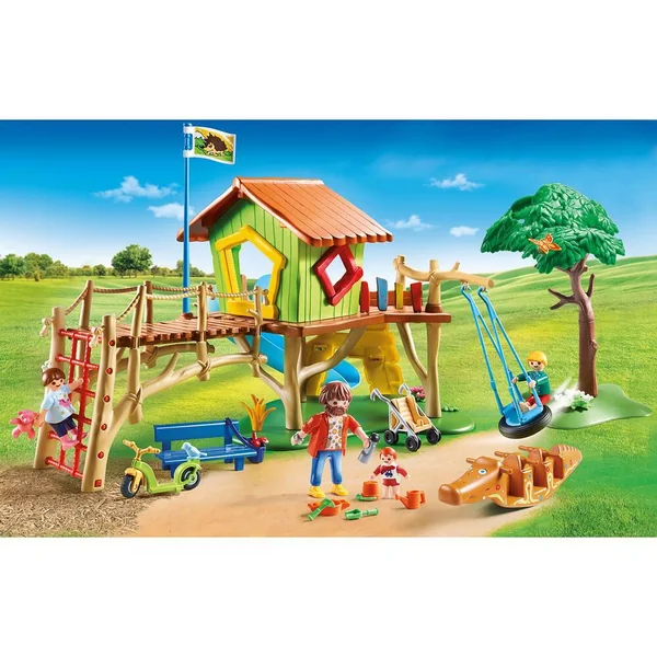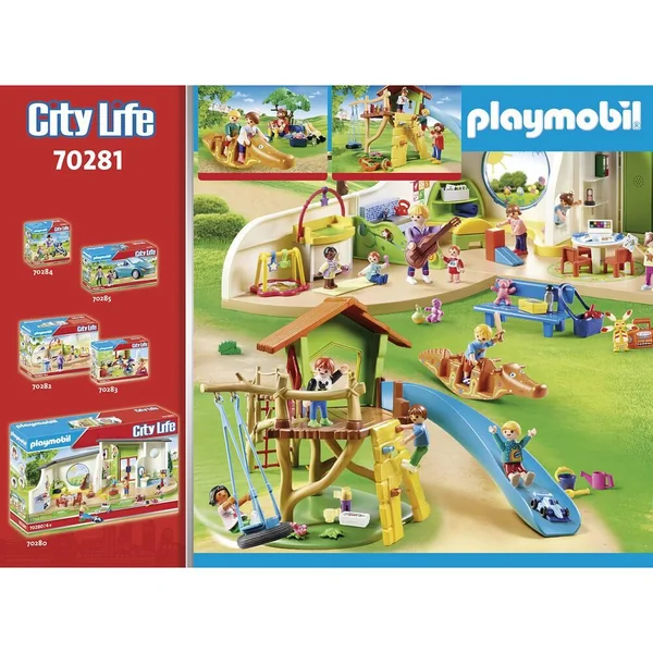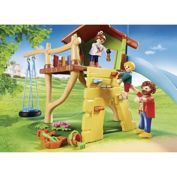 Youpi, on va au centre de loisirs ! Les enfants adorent aller au centre de loisirs, ils y retrouvent leurs amis et peuvent s’amuser toute la journée. En plus, les animateurs sont drôles et très gentils ! À ce soir maman ! L’accès à la cabane de jeu se fait par un filet d’escalade ou un mur avec prises. Contient 4 personnages, 1 cabane, 1 toboggan, 2 balançoires, 1 filet, 1 mur d’escalade et des jouets pour le sable.