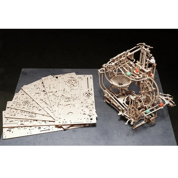 Le plaisir ne s’arrête pas à l’assemblage. Une fois que vous avez fini d’assembler votre modèle, le plaisir ne fait que commencer ! Regardez le puzzle en bois prendre vie pendant que vous actionnez l’élévateur afin de pousser les billes dans leurs aventures.