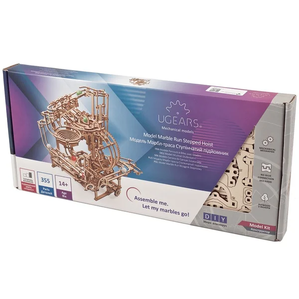 Avec Ugears, le plaisir ne s’arrête pas à l’assemblage. Lorsque vous assemblez un Parcours à Billes Ugears, le plaisir ne fait que commencer ! Vous, votre famille et vos amis aurez des heures de plaisir à regarder cette ingénieuse machine envoyer des billes à travers un parcours sinueux, ou encore tourbillonner dans un entonnoir. Comme tous nos modèles, le Parcours à Billes avec Gradins Ugears est un magnifique appareil autonome, ou il peut faire partie d’une collection croissante de Parcours à Billes Ugears.