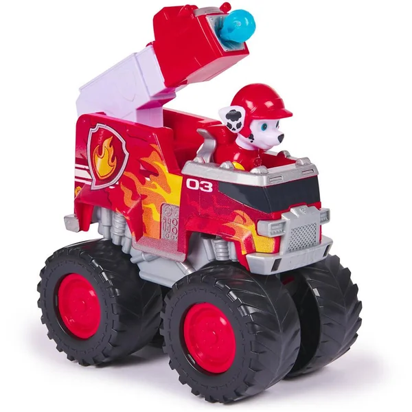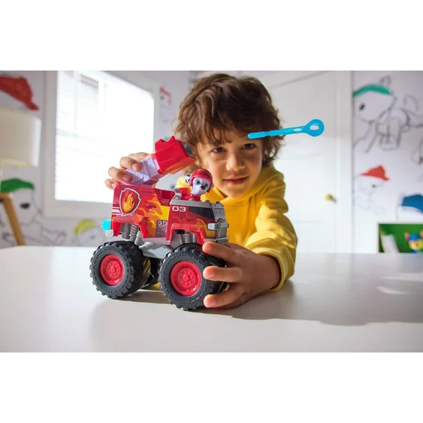 Avec une figurine amovible de chiot incluse. Contenu : un véhicule et une figurine Pat’ Patrouille Rescue Wheels de Marcus.