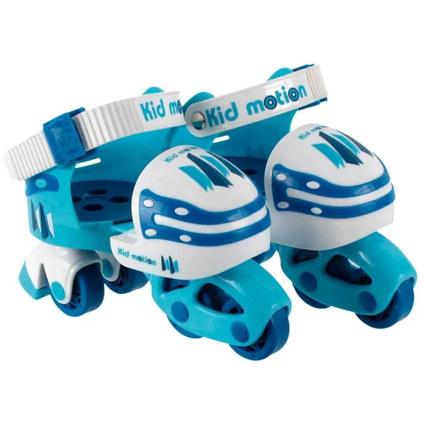 Patins évolutifs et ajustables. Evolutifs de la version patin pour débuter 2 plus 2 roues à la version roller 4 en ligne, le tout sans outil. Ajustables de la taille 25 à la taille 32. Châssis en plastique ABS. 1 frein arrière à chaque pied. Sangles réglables. Roues en plastique PVC de 40 mm. Poids maximum de l’utilisateur : 20 kg.