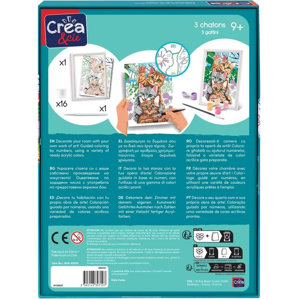 Avec les kits peinture et cadre, basés sur la technique de coloration par numéros, les enfants apprennent à colorier les différentes images avec soin et attention, améliorant ainsi leur talent artistique et développant leur motricité. Au final, ils ressentiront un sentiment de joie, de fierté et de satisfaction qui les incitera à continuer de peindre. Comprend : 16 couleurs acryliques prêtes, 1 palette, 1 carte pré imprimée, 1 pinceau, 1 cadre de 18.5 x 25 cm, 1 manuel. Dimensions de la boîte : 20 x 4 x 26.5 cm. Décorez votre chambre avec votre propre œuvre d’art ! Coloriage guidé par numéros, en utilisant une variété de couleurs acryliques prêtes à l’emploi.