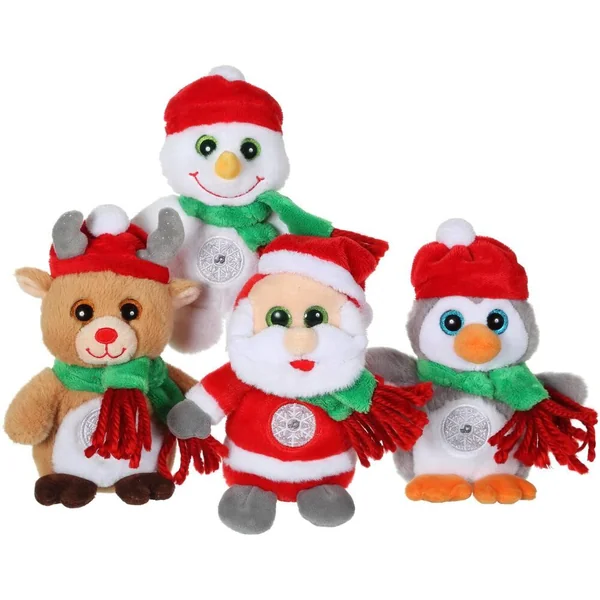 Craquez pour ces adorables peluches de Noël aux yeux pailletés. Une jolie musique de Noel retentit quand on appuie sur leur broderie. A retrouver au pied du sapin pour un petit cadeau trop mignon ! Dès la naissance. Fonctionne avec 3 piles LR44 fournies et non remplaçables.