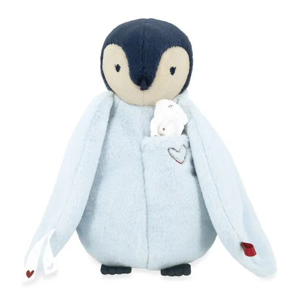 Ce manchot en peluche au ventre moelleux est accompagné de son mouchoir, idéal pour déposer des bisous ou l’odeur des parents et ainsi rassurer bébé, dès la naissance. Il peut être difficile pour le tout-petit de se séparer de son parent, c’est pourquoi Kaloo a imaginé cette peluche à bisous manchot : agréable à toucher et à câliner, elle propose une petite poche facilement accessible sur le devant où est cousu un joli mouchoir en mousseline de coton.