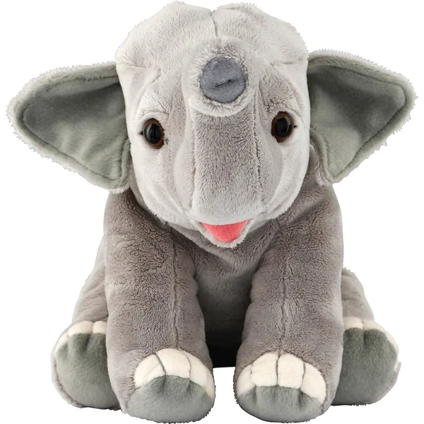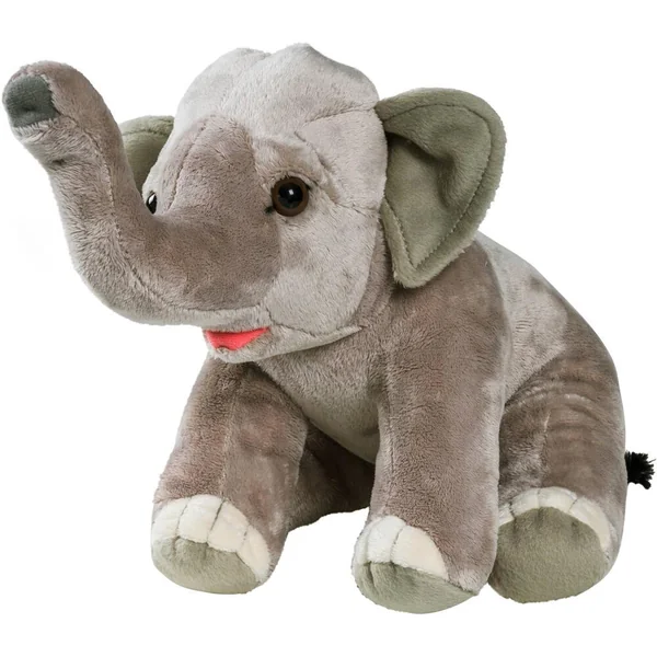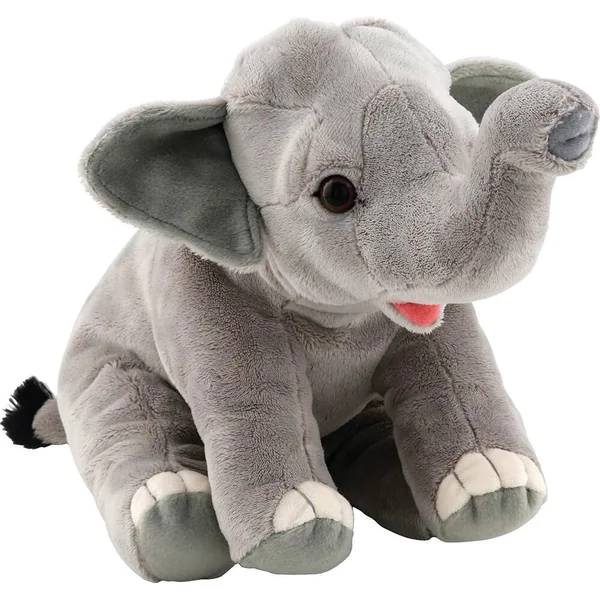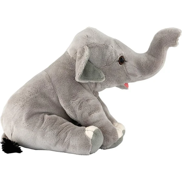 Eléphant en peluche de 28 cm. Longueur : 28 cm de la tête à la queue. Longueur : 39 cm de la trompe à la queue.