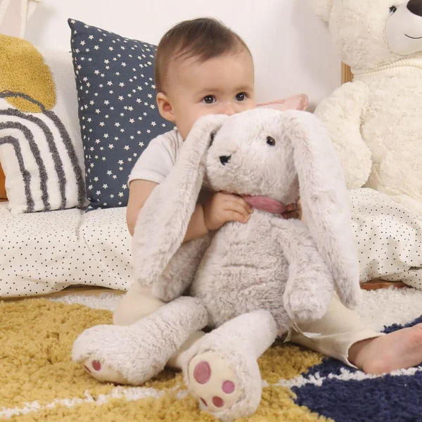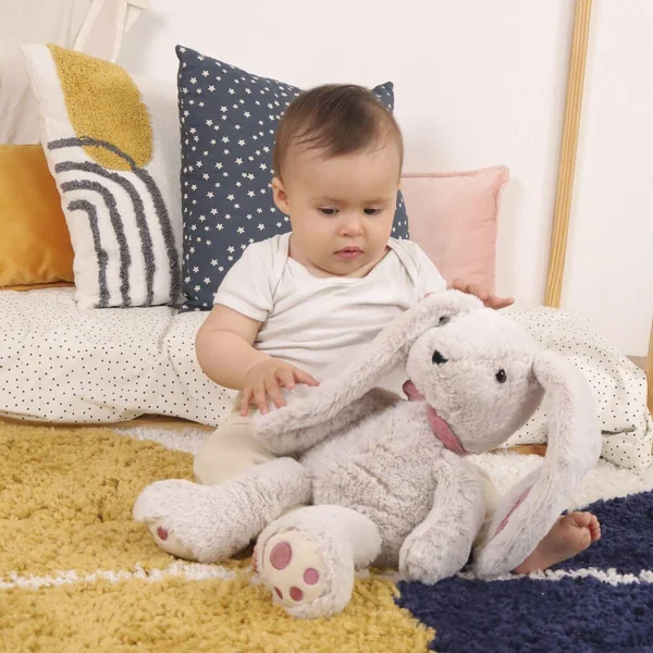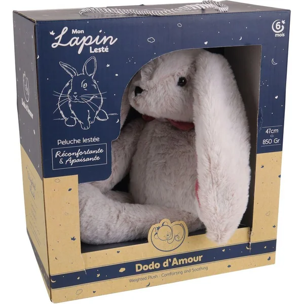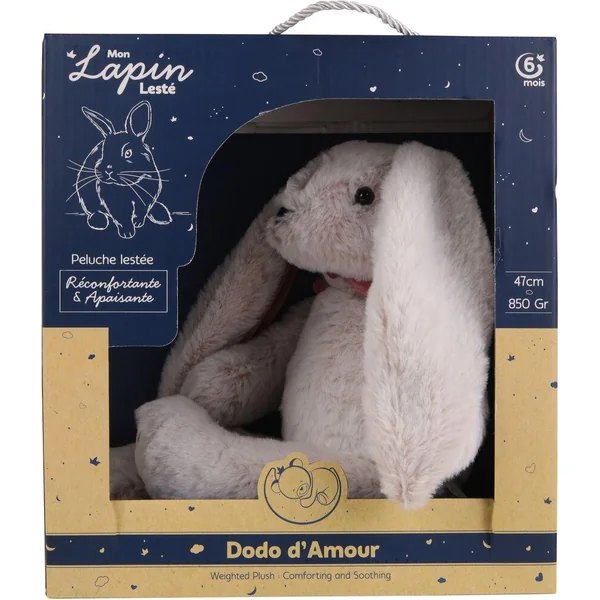 Une peluche lapin lesté de 47cm et 850gr rose.
