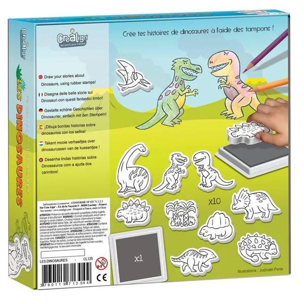Des personnages à tamponner afin de créer ses histoires et réaliser ses plus beaux dessins ! Une boite carrée en carton épais contenant 10 tampons en EVA. 1 encreur gris (dimension 70 x 70 mm) lavable à l’eau. Contient 10 tampons en mousse et 1 encreur.