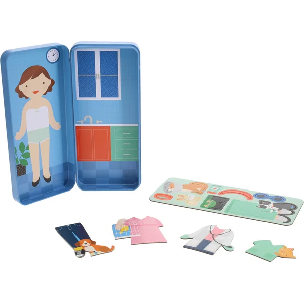 Un ensemble magnétique conçu pour inspirer les filles. Inspirez une amoureuse des animaux à devenir vétérinaire. Une gamme de pièces magnétiques de vêtements et d’équipements professionnels, qui, avec des scènes en intérieur, forment une pratique boîte en métal pour les voyages. Le jeu offre de nombreuses combinaisons offrant un grand espace à l’imagination personnelle.