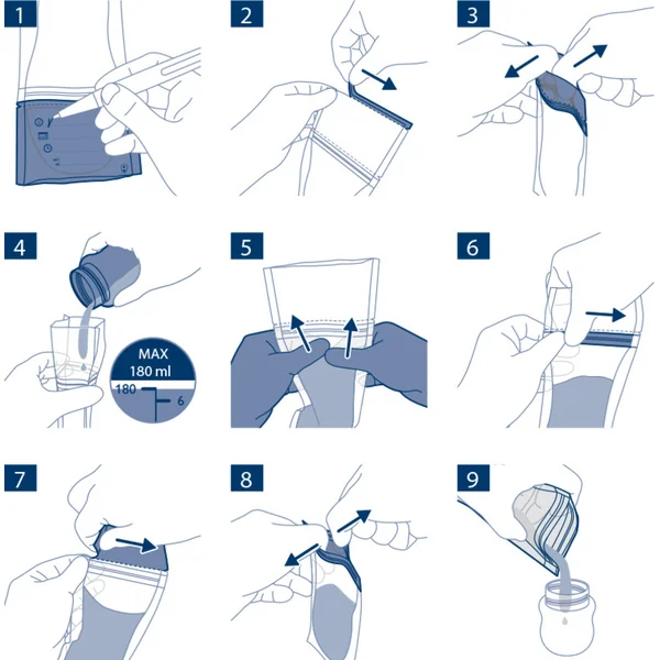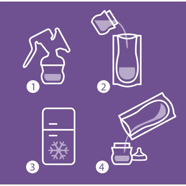 - Exprimez, remplissez, stockez : Une large et robuste ouverture assure un remplissage facile du sac et un versement du lait maternel