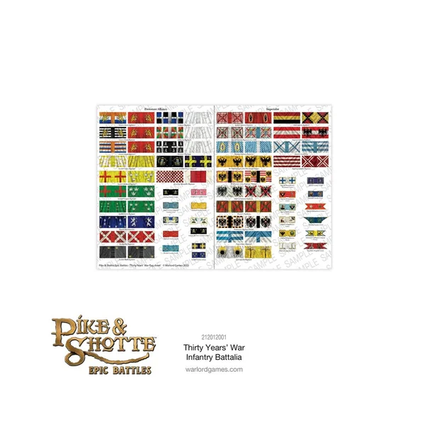 - 1 feuille de drapeaux en couleurs contenant les couleurs des deux camps de la guerre de Trente Ans