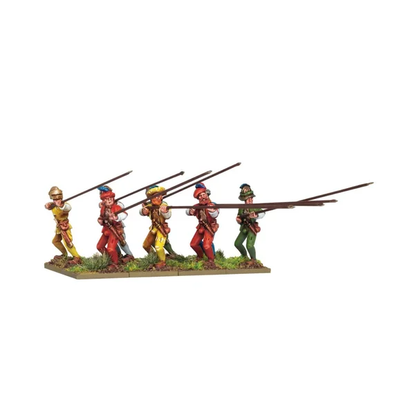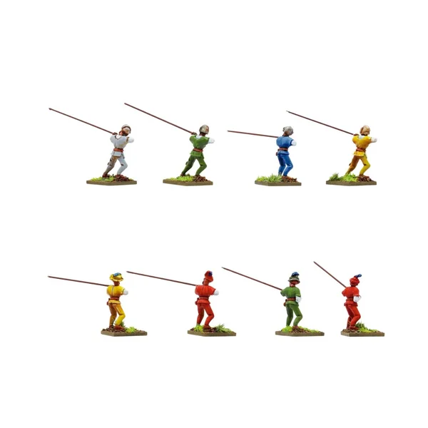 Ce blister contient 8 piquiers suisses avec leurs armes dans la position « charge », un choix fantastique pour tout général des guerres italiennes qui souhaite enrichir son armée.