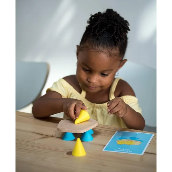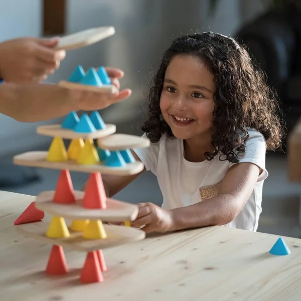 Ce kit contient 33 cônes et 11 planchettes en bois ainsi que 14 cartes de références de structures créatives. Plusieurs joueurs peuvent être adversaires. Vous pouvez faire des challenges avec vos enfants, et le gagnant a un prix. Attention au danger que représentent les petites pièces.