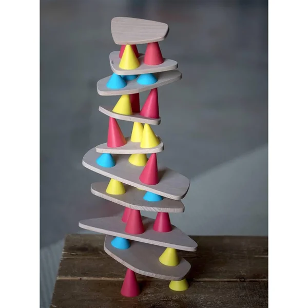Piks est un jouet créatif de construction conçu pour le développement de la concentration et de l’imagination des enfants. Le principe général du jeu est simple : créer la structure la plus originale et impressionnante sans laisser tomber aucune pièce ! La prise de décision, la motricité fine et l’imagination transformeront les joueurs en de véritables artistes en pleine performance de concentration. Comprend : 33 cônes en silicone, 11 planchettes en hêtre, 1 sac en coton OPPI®, 1 livret d’instruction et 14 cartes créatives Piks.