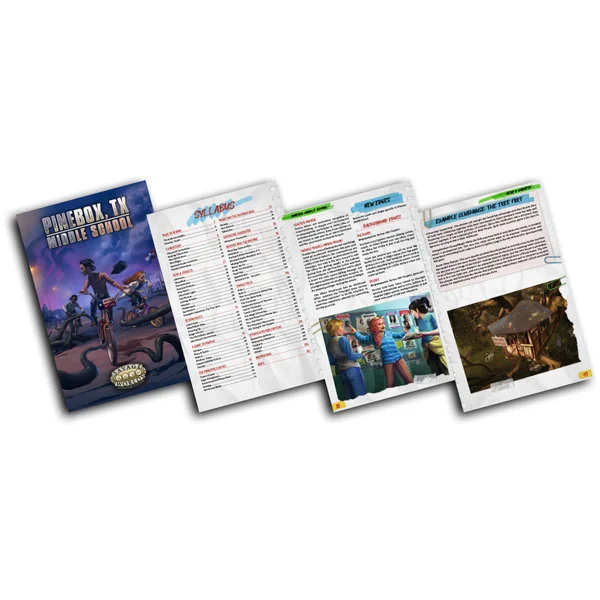 Pinebox TX Middle School offre tout ce dont vous avez besoin pour créer votre propre élève de 6e année, avec de nouvelles entraves, de nouvelles limites et même une section sur la génération familiale, afin que vous sachiez à qui vous adresser pour vous faire conduire sur le site de votre prochaine chasse aux fantômes. Il y a des règles pour se déplacer dans Pinebox et les environs de Golan County en tant qu’enfant avec un peu plus que votre fidèle vélo, pour naviguer dans l’étrange manque de fiabilité des signaux des téléphones portables dans le Texas rural, pour utiliser des « armes douces » comme des pistolets à eau et des pétards pour distraire et perturber vos adversaires, et même pour toucher aux arcanes par le biais d’une magie rituelle dangereuse mais puissante.