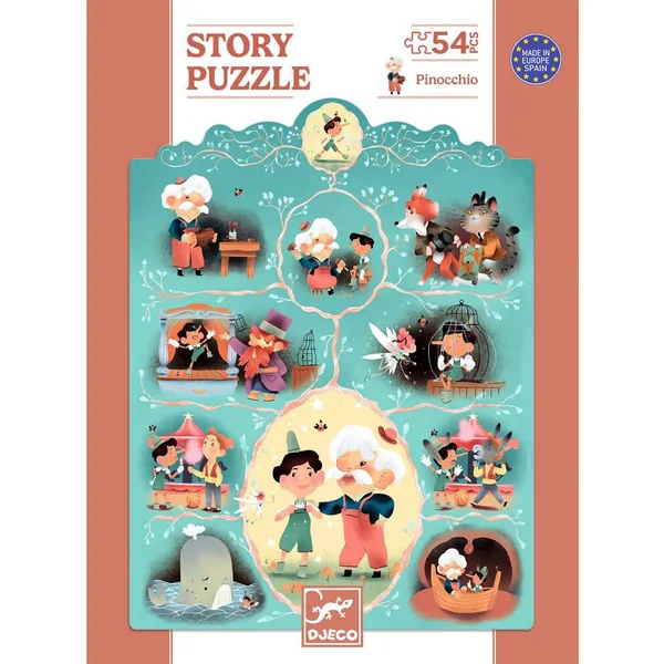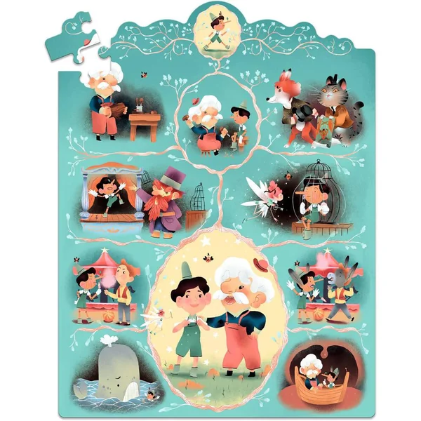 L’enfant reconstitue un puzzle pour découvrir le célèbre conte de Pinocchio sous forme d’une BD muette. Ce magnifique puzzle de 54 pièces est présenté dans une jolie boîte.