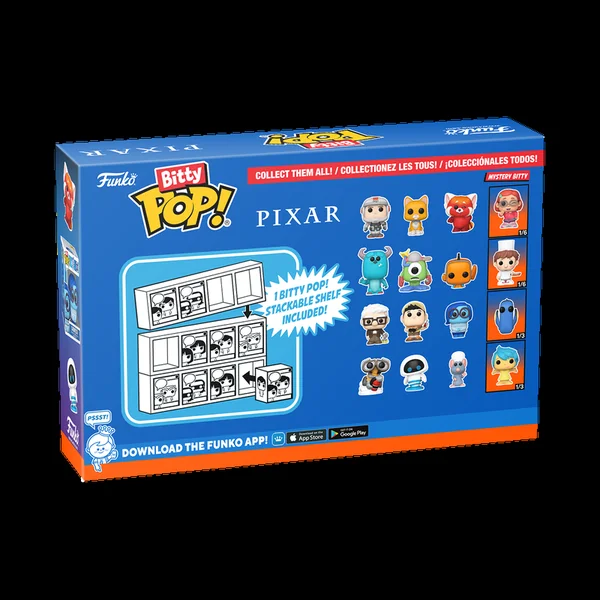 Vos Pops ! préférés ont été rétrécis en Bitty Pops ! Élargissez votre collection Disney Pixar avec cet assortiment de figurines Bitty Pop ! à l’effigie de vos personnages animés les plus appréciés ! Ce paquet de 4 comprend Bitty Pop ! Sulley, Bitty Pop ! Boo, Bitty Pop ! Mike Wazowski, et une figurine Bitty Pop ! mystère. Les figurines Bitty Pop ! mystères possibles sont Hyper Rare (1/6) Russell, Hyper Rare (1/6) Zurg, Rare (1/3) Celia, et Rare (1/3) WALL-E avec l’extincteur. Les Bitty Pops ! sont emballés dans des boîtes en acrylique dur avec des couvercles inférieurs amovibles. Les couvercles détachables servent également de bases acryliques sur lesquelles les figurines Bitty Pop ! sont collées. Triez et rangez vos Bitty Pops ! à l’aide de la vitrine incluse ! Les vitrines en acrylique sont empilables et peuvent contenir quatre figurines Bitty Pop ! chacune. Les figurines en vinyle mesurent environ 2,2 cm. Quatre figurines par paquet. Avertissement : Risque d’étouffement. Les objets de collection sont petits. Ne conviennent pas aux enfants de moins de 3 ans. La sélection des articles est aléatoire, car chaque pièce est emballée à l’aveugle. Nous ne pouvons pas accepter les demandes d’articles spécifiques. Il se peut que vous receviez des figurines en double.