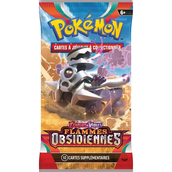 Booster Pokemon ECARLATE ET VIOLET – FLAMMES OBSIDIENNES – 10 cartes supplémentaires – Des braises rougeoyantes illuminent la nuit noire et les étincelles s’enflamment pour former une véritable fournaise lorsque Dracaufeu-ex surgit des profondeurs obscures avec de nouveaux pouvoirs ! Le phénomène brillant de Téracristallisation donne à certains Pokémon-ex, notamment à Tyranocif, Bekaglaçon et Apireine, un type différent du leur, alors que Dracolosse-ex et Rongrigou-ex prouvent la maîtrise de leur force intérieure. Vrombotor-ex, Melmetal-ex et d’autres Pokémon ne sont pas en reste et promettent de changer le cours des combats dans l’extension Écarlate et Violet – Flammes Obsidie – Plus de 190 cartes – Pokémon-ex Téracristal dont le type a changé avec une apparence rappelant les cristaux, notamment un Dracaufeu-ex de type Obscurité – Plus de 20 Pokémon-ex inédits : une mécanique de jeu revisitée – Plus de 15 cartes Dresseur –